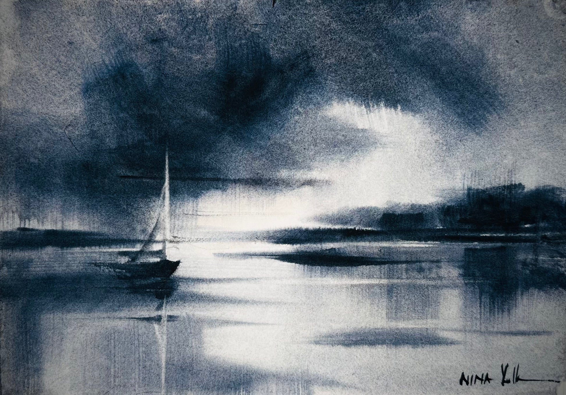 Watercolour on paper by Nina Volk, H:21cm x L:30cm landscape orientation, unframed
